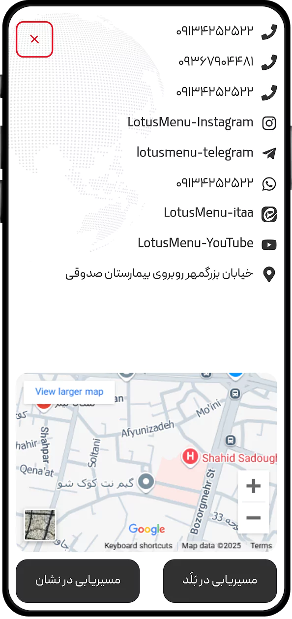 راه‌های ارتباطی: شماره‌تماس، شبکات اجتماعی، مسیریابی