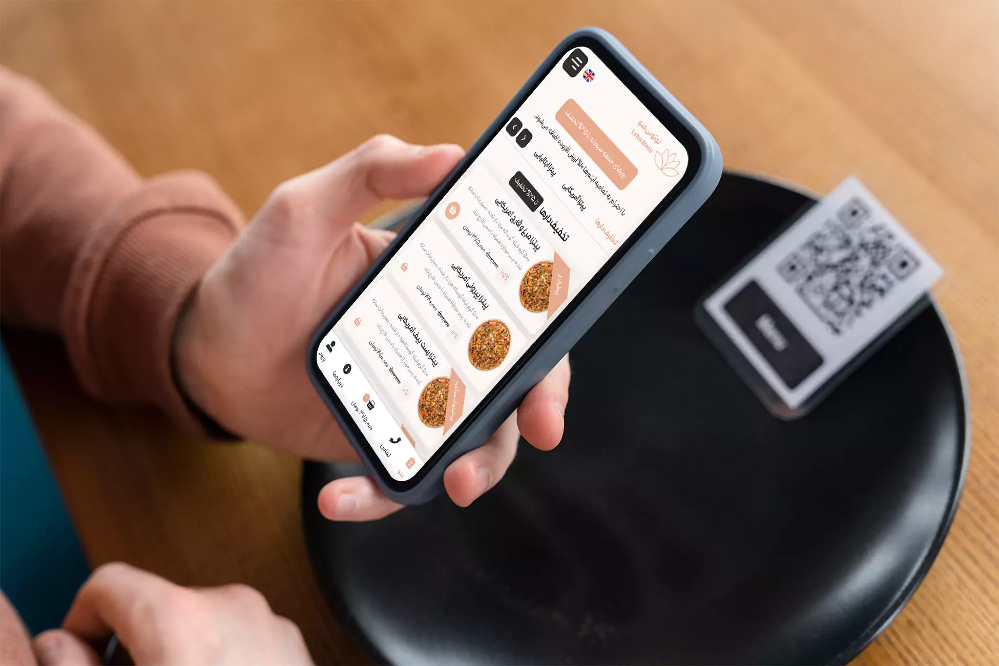 مشتریان با استفاده از گوشی خود، کد QR را اسکن میکنند یا آدرس وب‌سایت رو سرچ می‌کنند.